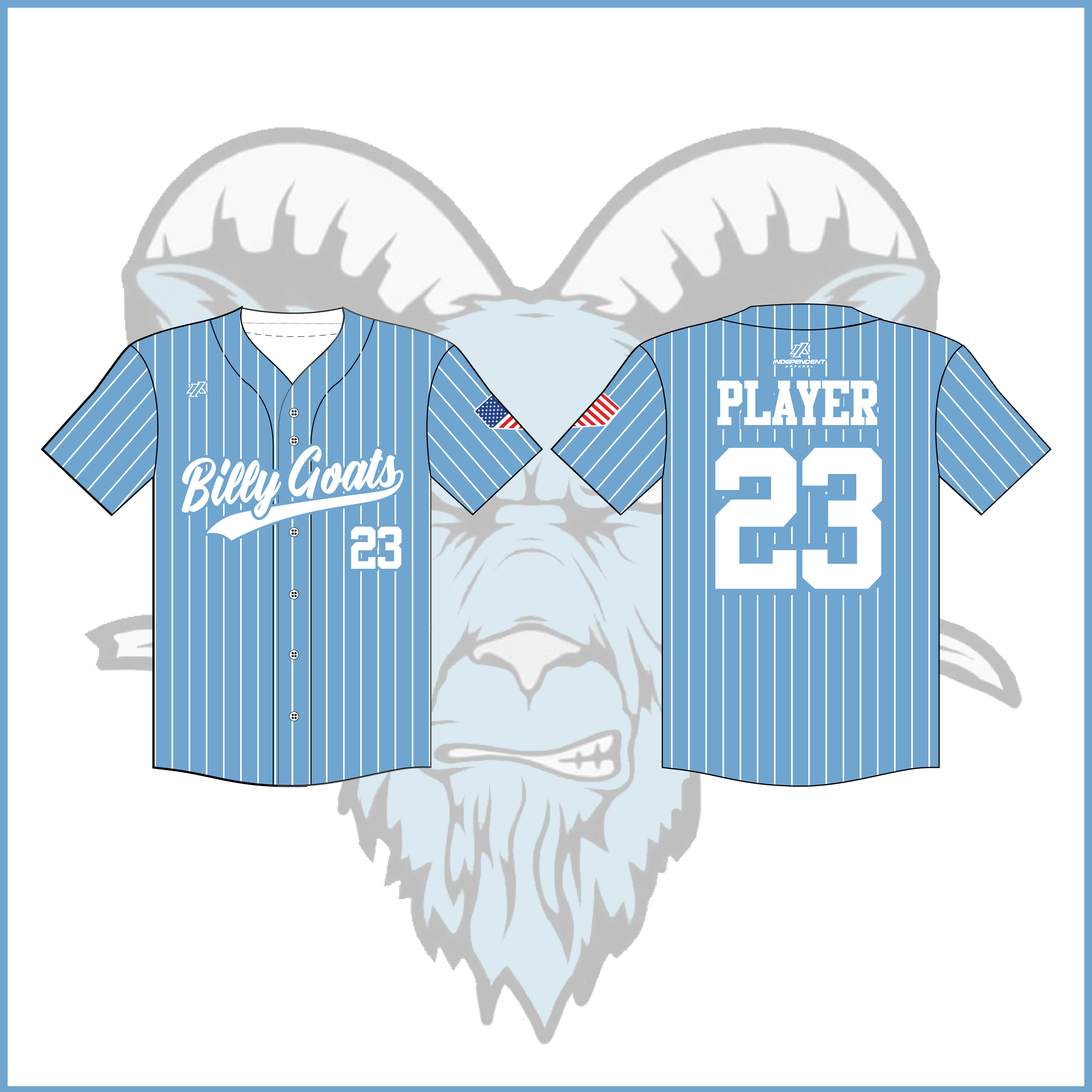 Billy Goats 11U White Light Blue Pinstripe Full Button Jersey
